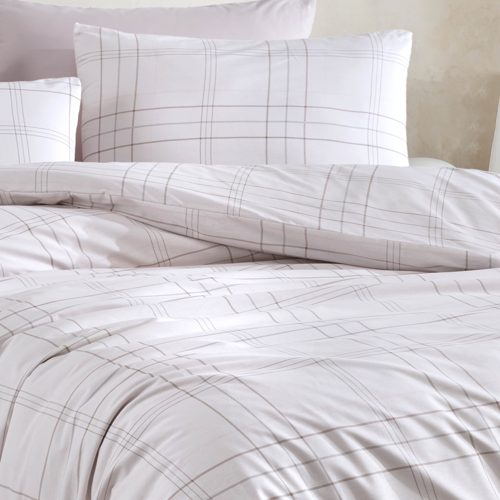 The Ruth Solid bedding set brings a modern and balanced touch to the bedroom, with a simple yet elegant design highlighted by fine lines in neutral tones. Made from quality cotton, it combines natural comfort with a clean and orderly look.