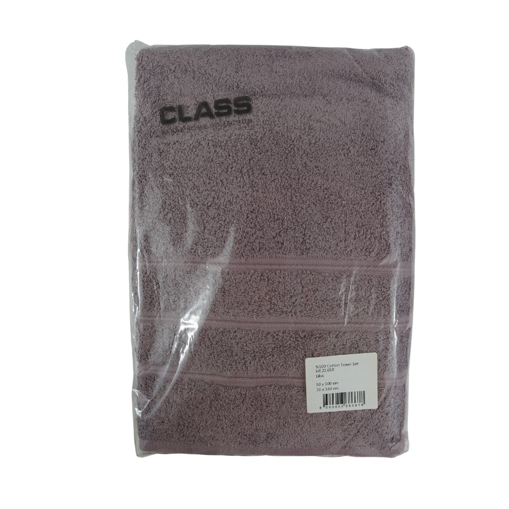 Set of 2 absorbent and fade-resistant towels, 100% Cotton, 580 gsm density, 50x100 cm + 70x140 cm, Damianos, Lilac