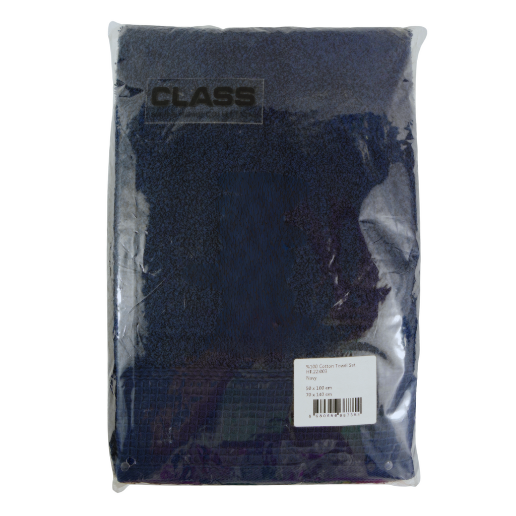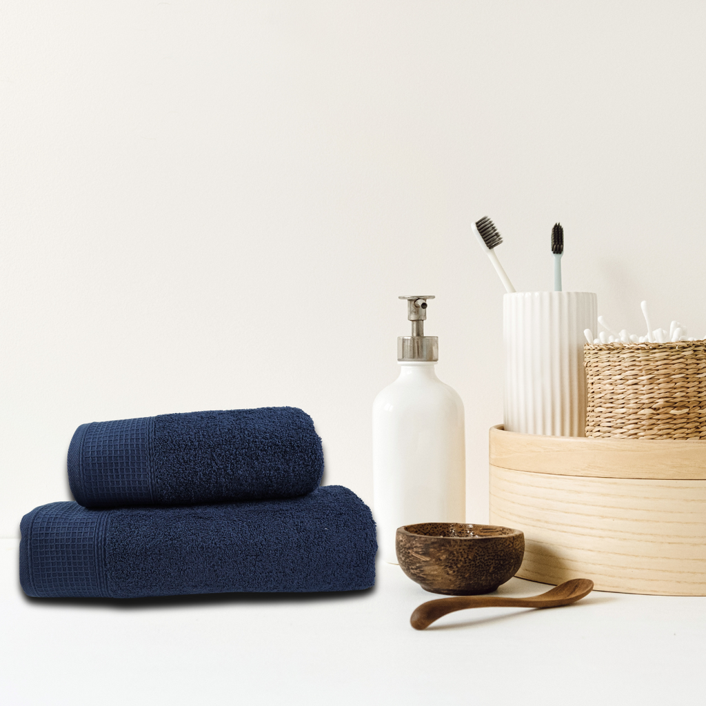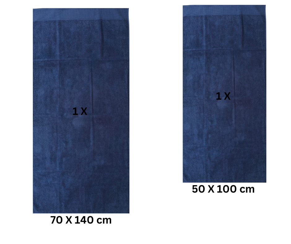 Set of 2 Absorbent and Fade-Resistant Towels, 100% Cotton, 480 gsm, 50x100 cm + 70x140 cm, Nicodemus, Navy