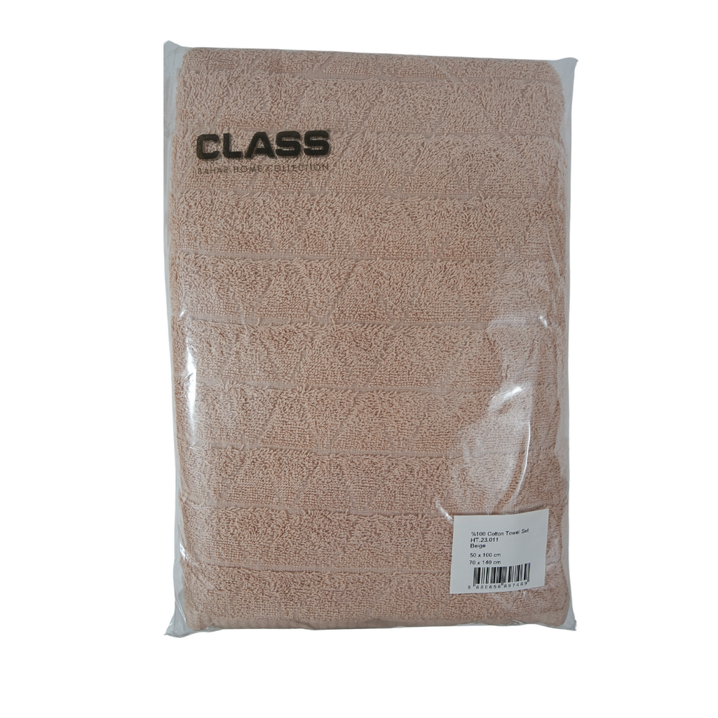Set of 2 Absorbent and Fade-Resistant Towels, 100% Cotton Jacquard, 390 GSM, 50x100 cm + 70x140 cm, Mermin, Beige