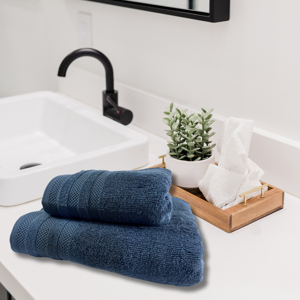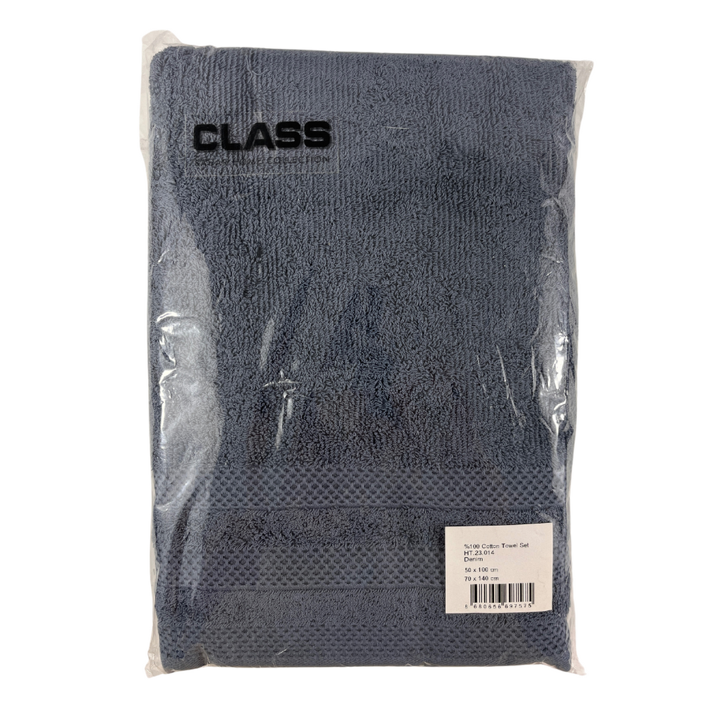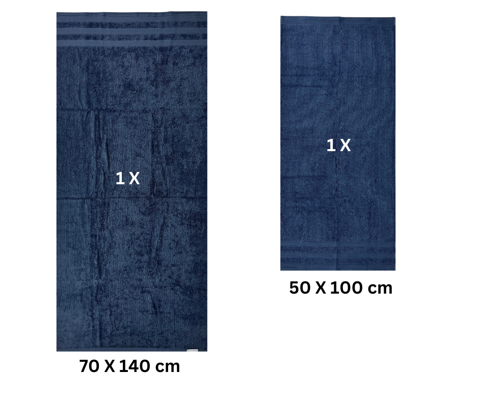 Set of 2 absorbent and fade-resistant towels, 100% Cotton Jacquard, 500 gsm density, 50x100 cm + 70x140 cm, Audo, Denim