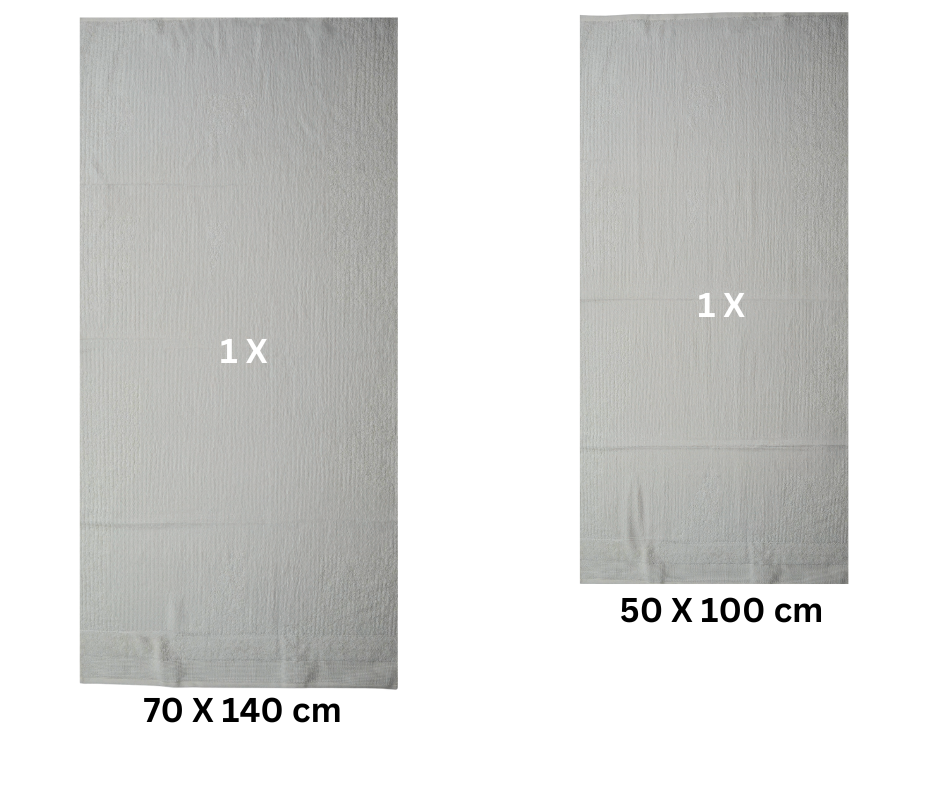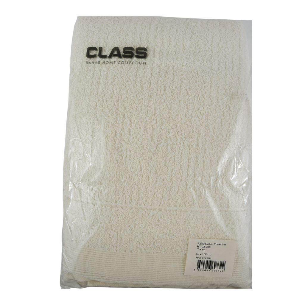 Set of 2 absorbent and fade-resistant towels, 100% Cotton Jacquard, 500 gsm density, 50x100 cm + 70x140 cm, Linos, Cream