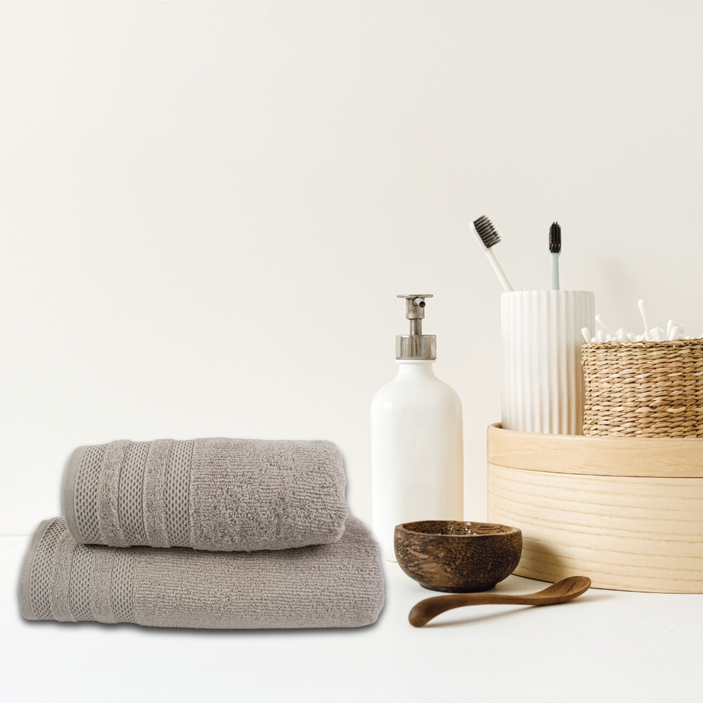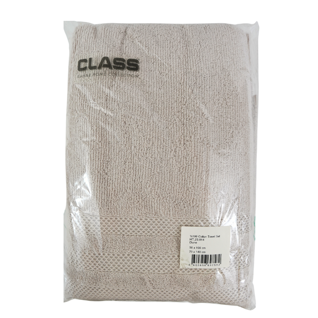 Set of 2 absorbent and fade-resistant towels, 100% Jacquard Cotton, 500 gsm density, 50x100cm + 70x140cm, Audo, Dune