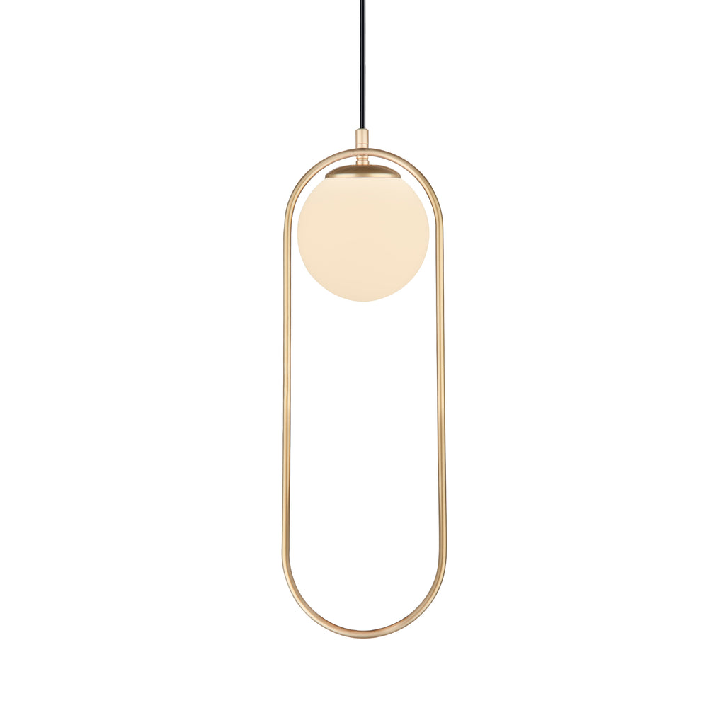 The Arch Gold pendant lamp is a modern design piece with glamorous accents, perfect for sophisticated and elegant interiors.