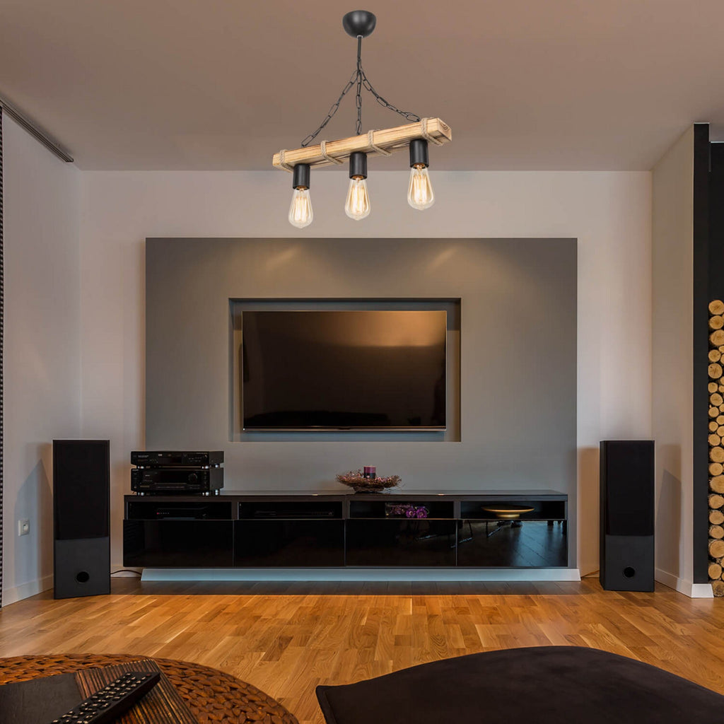 Solid Wood Pendant Lamp with 3 Bulbs – striking design & generous light