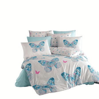 100% bumbac asigură o atingere plăcută, precum și o durabilitate de lungă durată. Această lenjerie de pat rămâne proaspătă și elegantă, rezistând la multiple spălări fără a-și compromite luminozitatea sau calitatea.